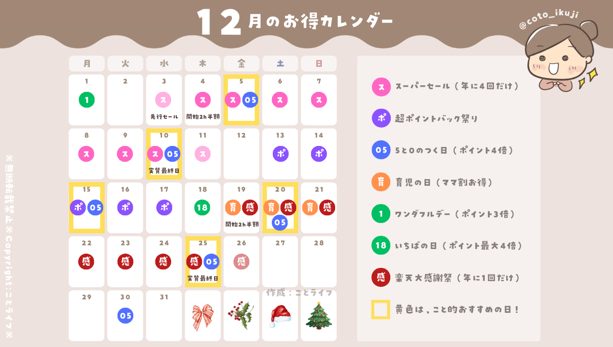 ママが知っておきたい楽天のお得な日を、分かりやすくまとめてるで。